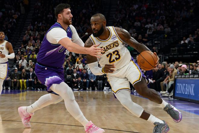 自从詹姆斯复出后,场均出战32.5分钟,能够拿到16.5分5篮板8.3助攻1抢断,两项命中率49%+33%。实话实说,相较于过去的22个赛季,詹姆斯本赛季数据明显下滑,效率也下降不少。用洛杉矶媒体话说,老詹本赛季在球队的地位,应该在东契奇和里夫斯之后。确实,东契奇和里夫斯真挑不出毛病,东契奇场均35.1分8.5篮板9.4助攻,里夫斯场均28.5分5.9篮板6.7助攻,这可是全联盟最强进攻二人组。即将41岁的老詹,显然很难从防守端给予球队帮助,列一个数据,本赛季詹姆斯在场时,湖人防守效率126.7;反之114.0。